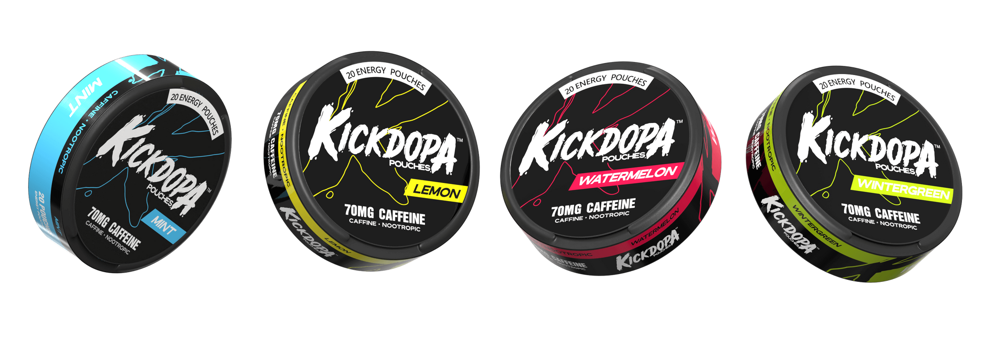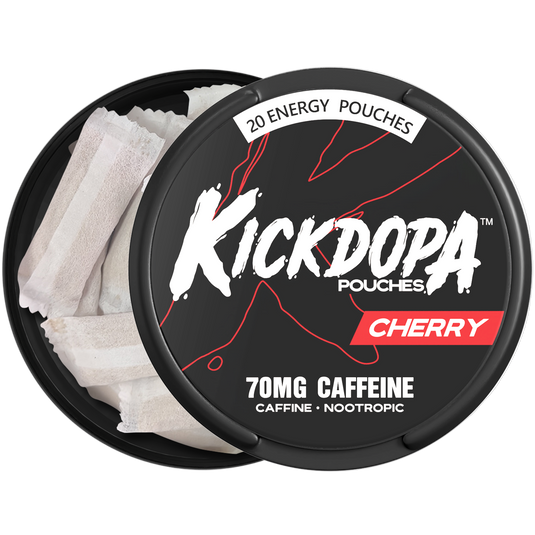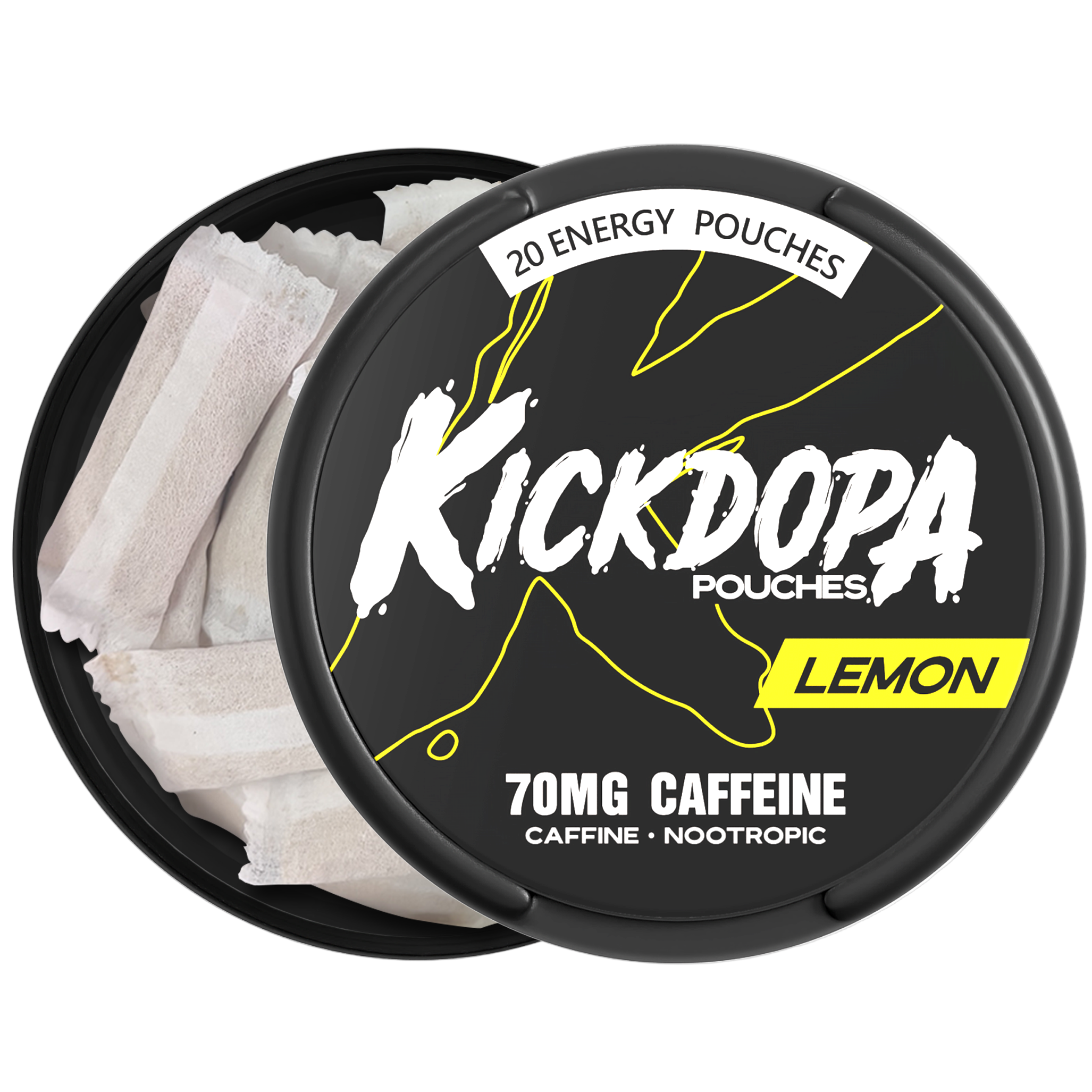 Kickdopa Energy Pouches are pocket-sized energy boosters powered by natural caffeine from guarana, combined with brain-supporting ingredients like L-Tyrosine and Alpha-GPC. Each can contains 20 pouches for quick, convenient energy and focus — anytime, anywhere.